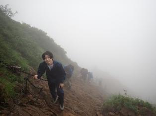 登山部 夏霧にぬれた山の景色に、重荷のつらさも吹き飛びました。