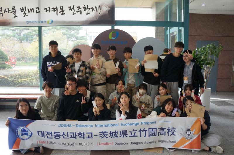 令和7年10月28日(火)~10月31日(金)の4日間、竹園高校の生徒10名が韓国・大田大新高校を訪問し、交流研修を実施しました。