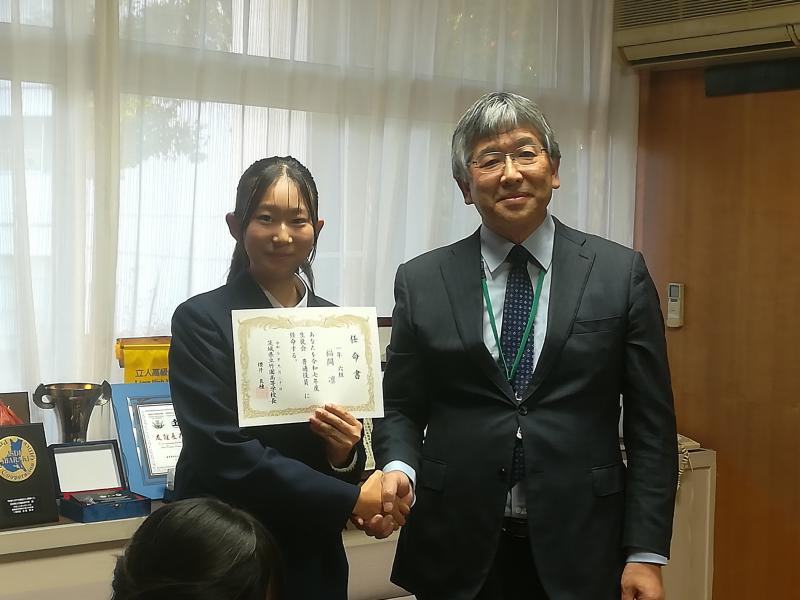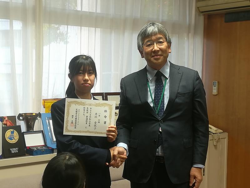 令和7年度の後期生徒会役員の任命式が行われ,校長先生より一人一人に任命書が手渡されました。後期の生徒会役員は1年生が7名と例年になく新しい顔ぶれが増えてさらにパワーアップした生徒会活動が期待されます。生徒の皆さんも生徒会活動にさらなるご理解ご協力をよろしくお願いします。