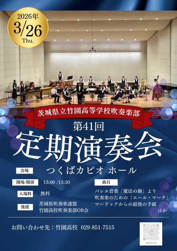 吹奏楽部 第41回定期演奏会のお知らせです。