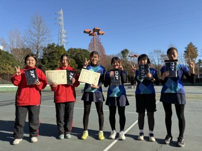 1年生だけのダブルス3本でのチーム戦です。男子はA・Bの2チームで出場しました。女子1年生は4名ですので、2名の秀英と合同チームで参加しました。