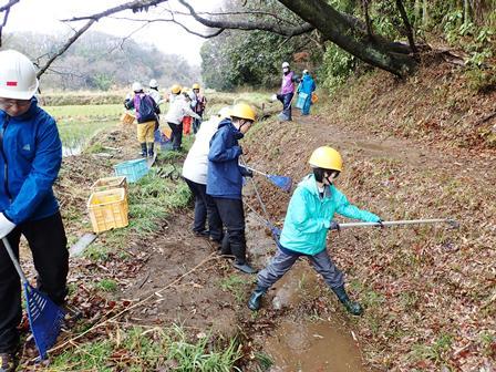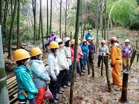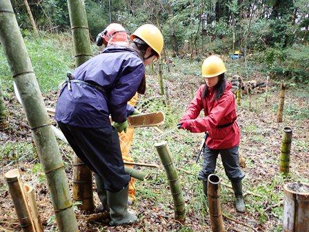 宍塚の里山で水田の整備作業と竹林の伐採作業を体験しました。水田は草を排除せずに活かす自然農法による稲作です。付加価値の高いコメが栽培できるとともに、里の生物多様性が高まる効果があることを学びました。また竹林では実際に伐採する作業を通して、適切な伐採が里山の生物多様性維持と環境の持続性維持につながることを学びました。夜はキャンプ場でバーベキューをして楽しかったです!