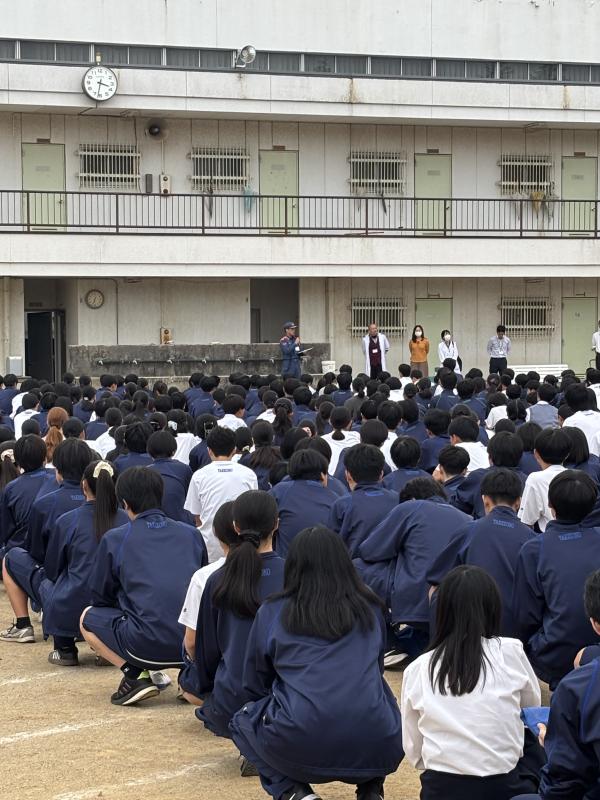 10月10日全校生徒を対象に避難訓練を実施しました。当日は、つくば消防並木分署から3名の隊員の方にご協力いただきました。隊員の方から講話もいただき、日頃から防災に関する意識を持つことの大切さを改めて確認することができました。